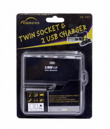 Cargador de Auto Doble 12V + Doble USB BM-003 Se Conecta al Encendedor del Auto y Deriva 2 Tomas de 12 a 24 V 2 Puertos USB con Carga de 500 Mah para Cualquier Celular o Tablet.