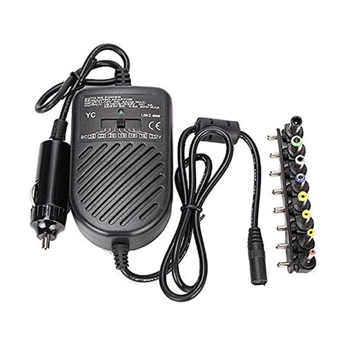 Adaptador de corriente universal para auto, portátil, notebook, 15V-24 V, con 8 fichas intercambiables.