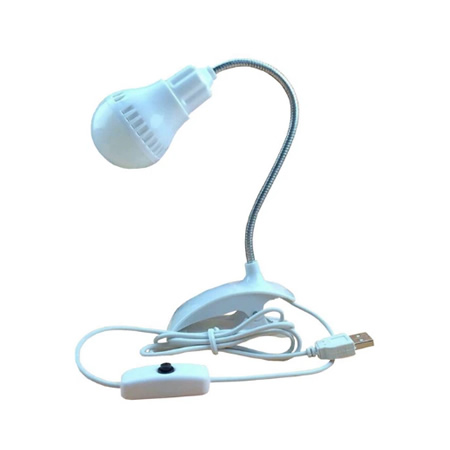 Lampara flexible con foco de luz led y pinza para sujetarla.